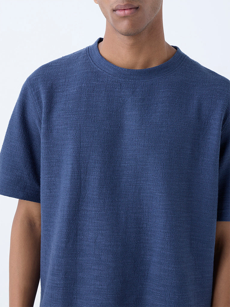 ETA Navy Solid Relaxed-Fit Cotton T-Shirt
