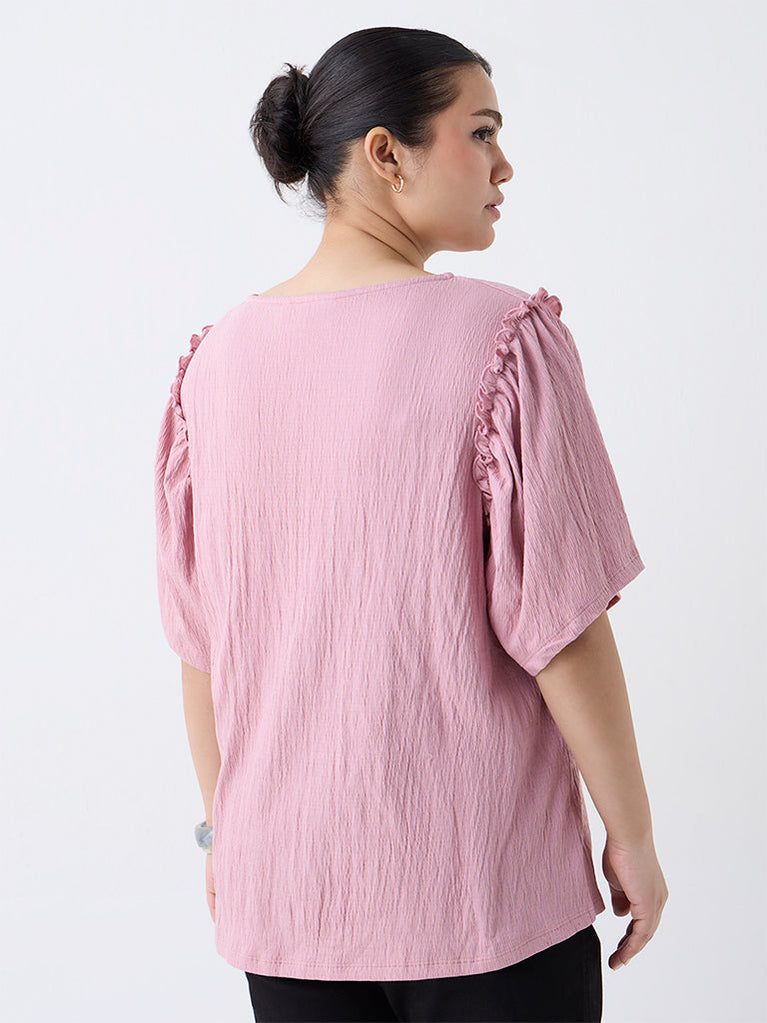 Perfect for soft, fuss-free dressing, this dusty pink top by Gia is crafted from a breezy crinkle-textured fabric that flatters without clinging. The round neck keeps it classic, while ruffle-detailed short sleeves add a playful, feminine touch.