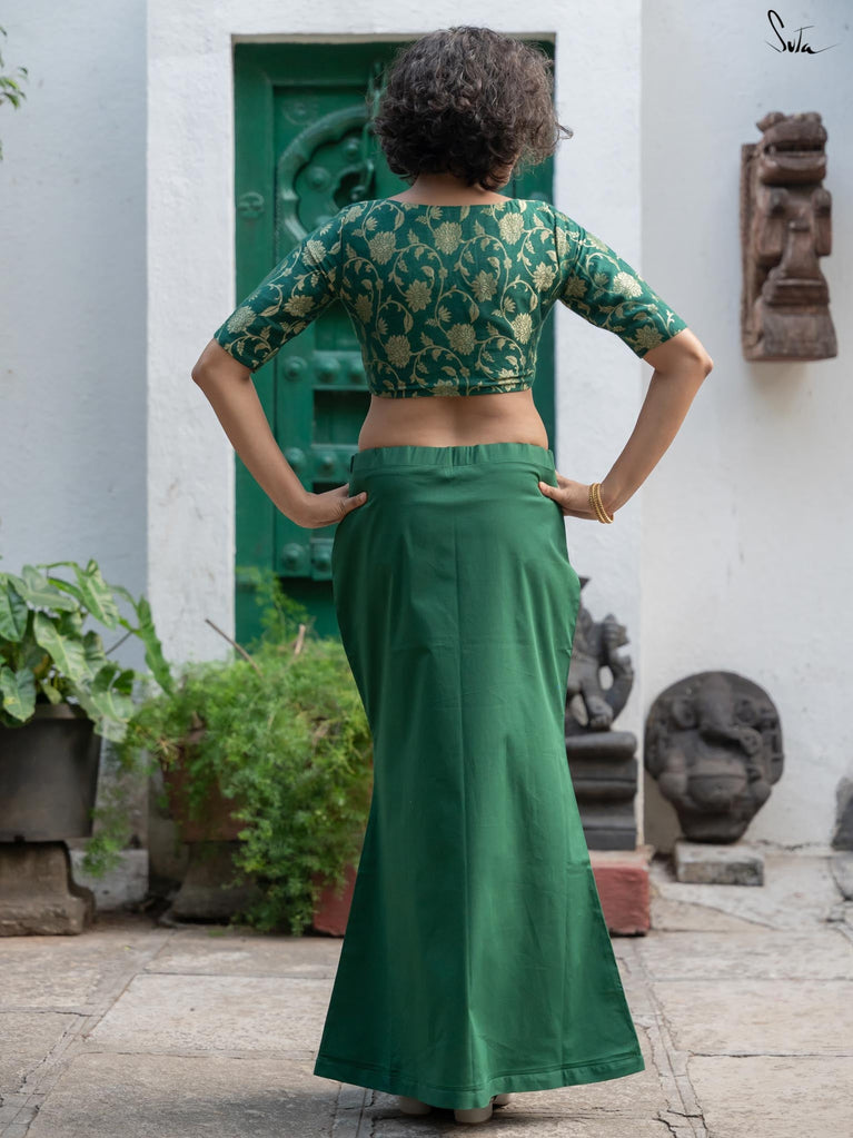 The Forest Play underskirts are made from soft, breathable cotton, providing a smooth and lightweight foundation for your sarees. Perfectly stretchable, they ensure your saree drapes gracefully while offering comfort for long celebrations.
