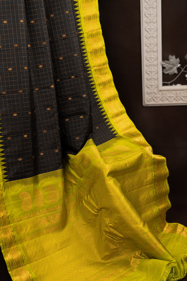 Varamahalakshmi Black & Light Green Gadwal Checks And Buttis Saree