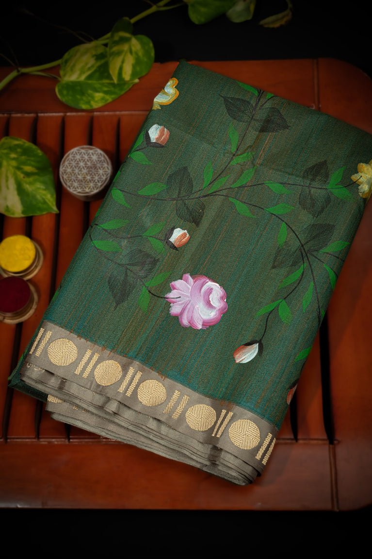 Varamahalakshmi Olive Green & Navy Blue Coimbatore Buttis Saree