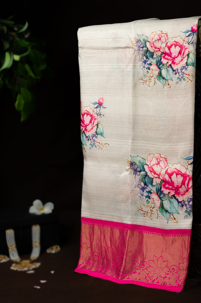 Varamahalakshmi Off White & Pink Fancy Digital Print Saree