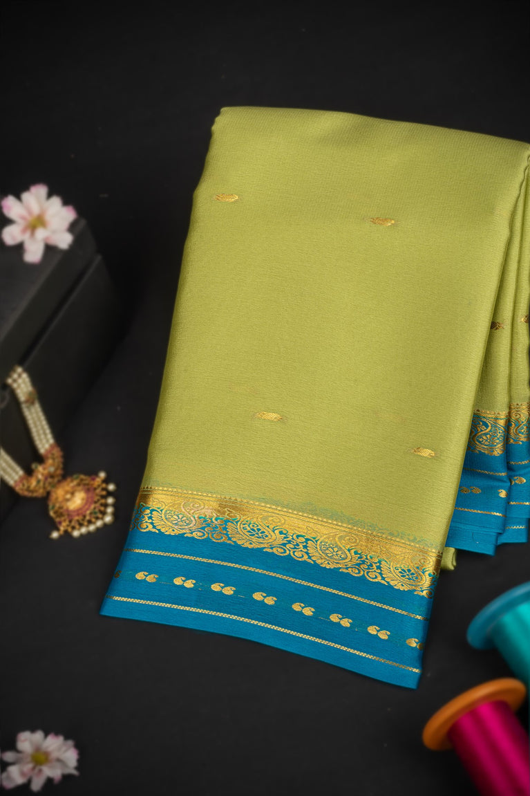 Varamahalakshmi Olive Green & Blue Mysore Buttis Saree