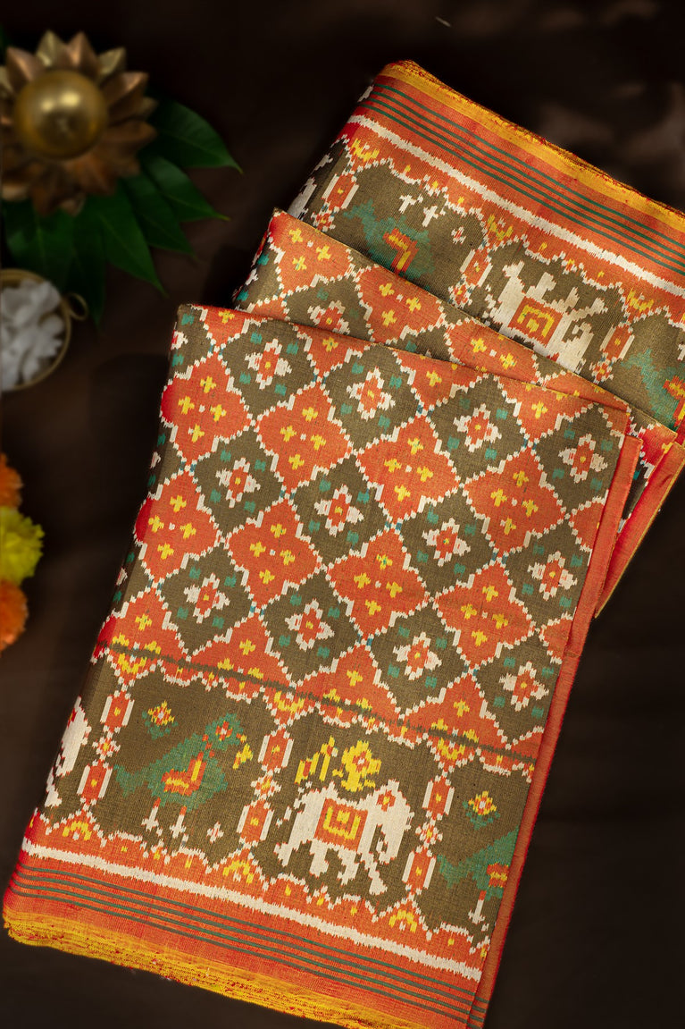Varamahalakshmi Olive Green & Multi-Colour Patola Ikat Saree