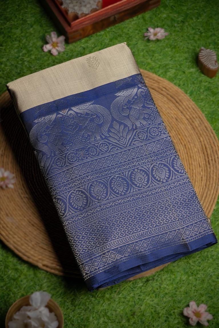 Varamahalakshmi Off White & Royal Blue Kuppadam Jaal Saree