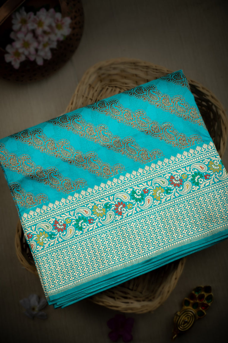 Varamahalakshmi Sea Blue & Multi-Colour Banarasi Buttis Saree