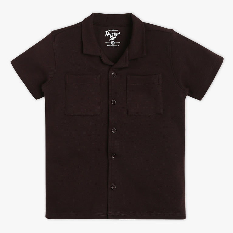 Boys Camp Collar Half Sleeve Solid Resort Sets Cuban Shirt