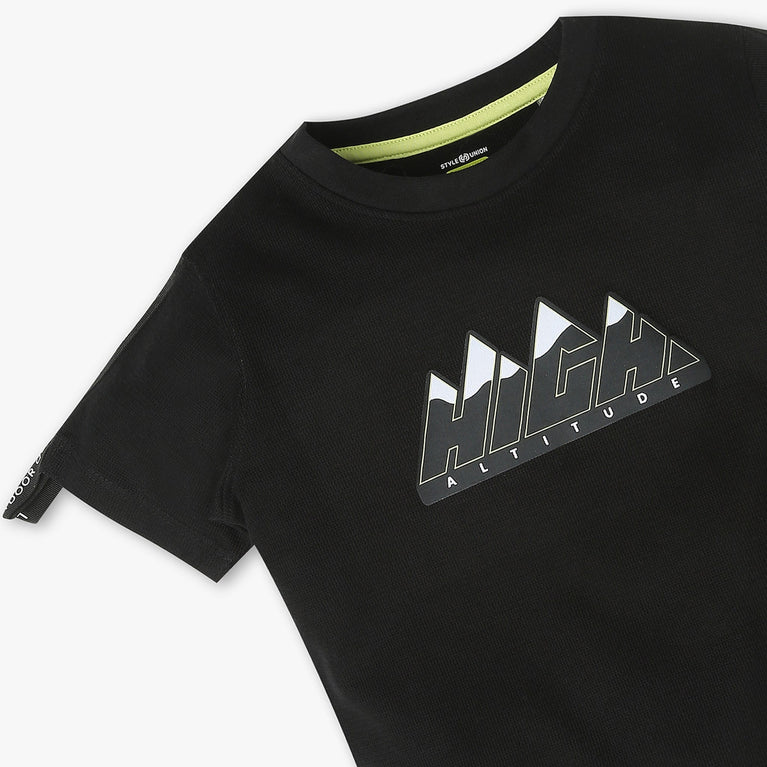 Introducing the Boy's Graphic Crew Neck Sweat Tee, a perfect blend of comfort and style for every young adventurer. Crafted from a soft cotton-polyester mix, this tee is designed for everyday wear, making it an essential addition to any boy's wardrobe.