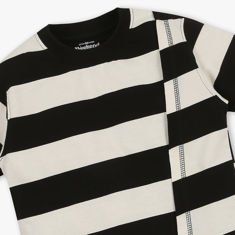 Experience the perfect blend of comfort and style with our Boys Crew Neck Striped T-Shirt. Crafted from a soft cotton-polyester blend, this t-shirt offers a cozy feel against the skin while ensuring durability and easy maintenance. The classic striped pattern adds a touch of timeless charm, making it a versatile addition to any young wardrobe.