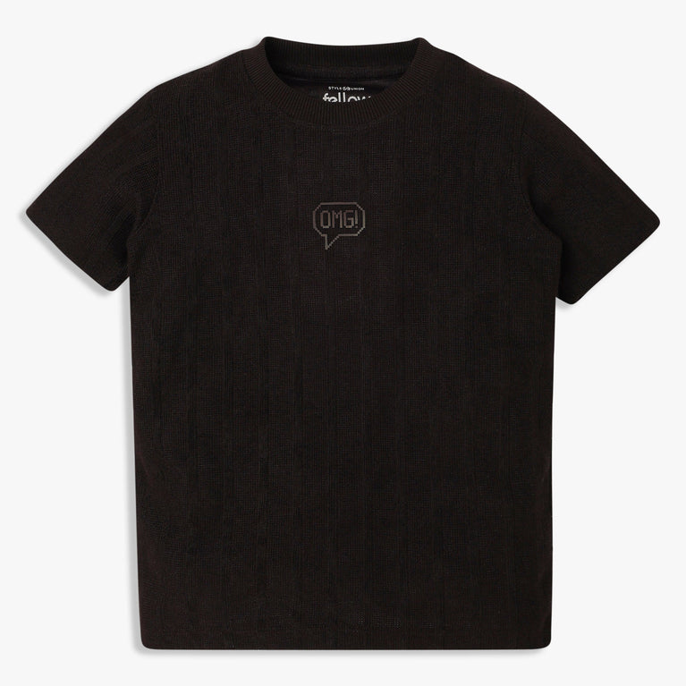 Experience the perfect blend of comfort and style with our Boys Knitted Crew Neck T-Shirt. Crafted from a soft cotton-polyester blend, this t-shirt offers a cozy feel that keeps your little one comfortable all day long. The solid pattern and classic crew neck design make it a versatile addition to any wardrobe, perfect for both casual outings and playtime adventures.
