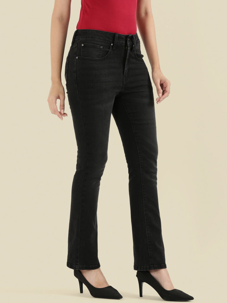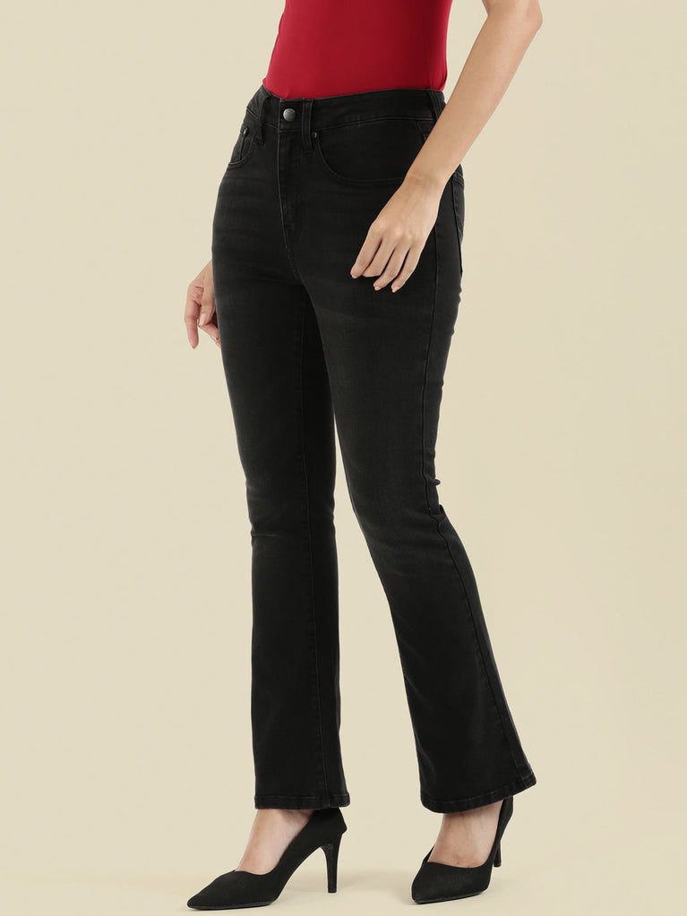 Elevate Your Casual Look With Our Stylish Boot Cut Jeans, Made From Cotton Denim. Featuring A Solid Pattern, Bootcut Fit, Full-Length Cut, Five Functional Pockets, And A Front Zipper With Button Closure. Perfect For Everyday Comfort And Effortless Style. A Must-Have Wardrobe Essential
