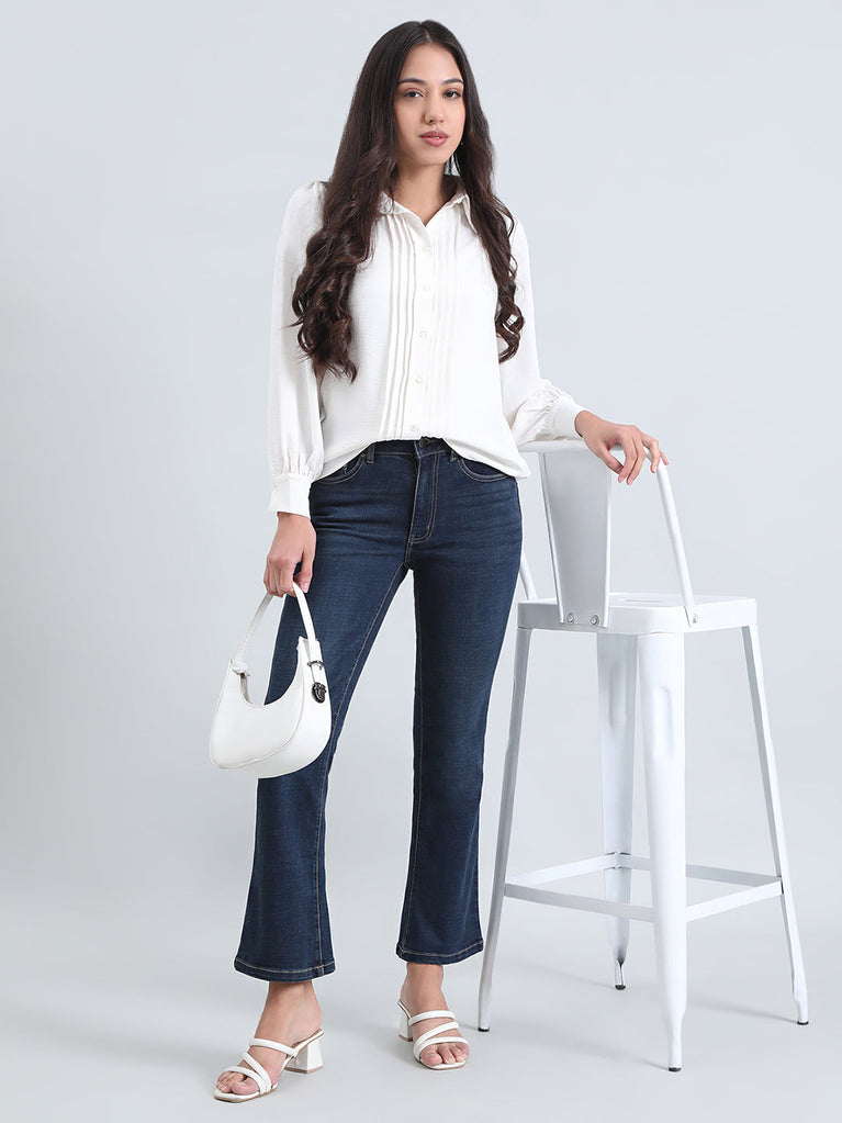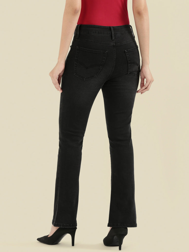 Elevate Your Casual Look With Our Stylish Boot Cut Jeans, Made From Pure Cotton Denim. Featuring A Solid Pattern, Mom Fit, Full-Length Cut, Five Functional Pockets, And A Front Zipper With Button Closure. Perfect For Everyday Comfort And Effortless Style. A Must-Have Wardrobe Essential