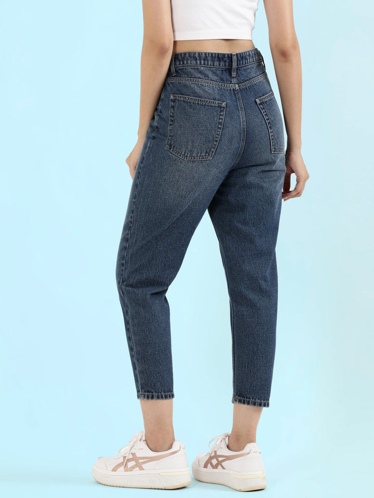 Elevate Your Casual Look With Our Stylish Mom Jeans, Made From Pure Cotton Denim. Featuring A Solid Pattern, Mom Fit, Full-Length Cut, Five Functional Pockets, And A Front Zipper With Button Closure. Perfect For Everyday Comfort And Effortless Style. A Must-Have Wardrobe Essential