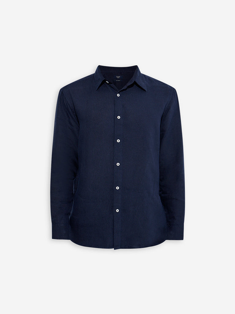 Ascot Navy Solid Relaxed-Fit Linen Shirt
