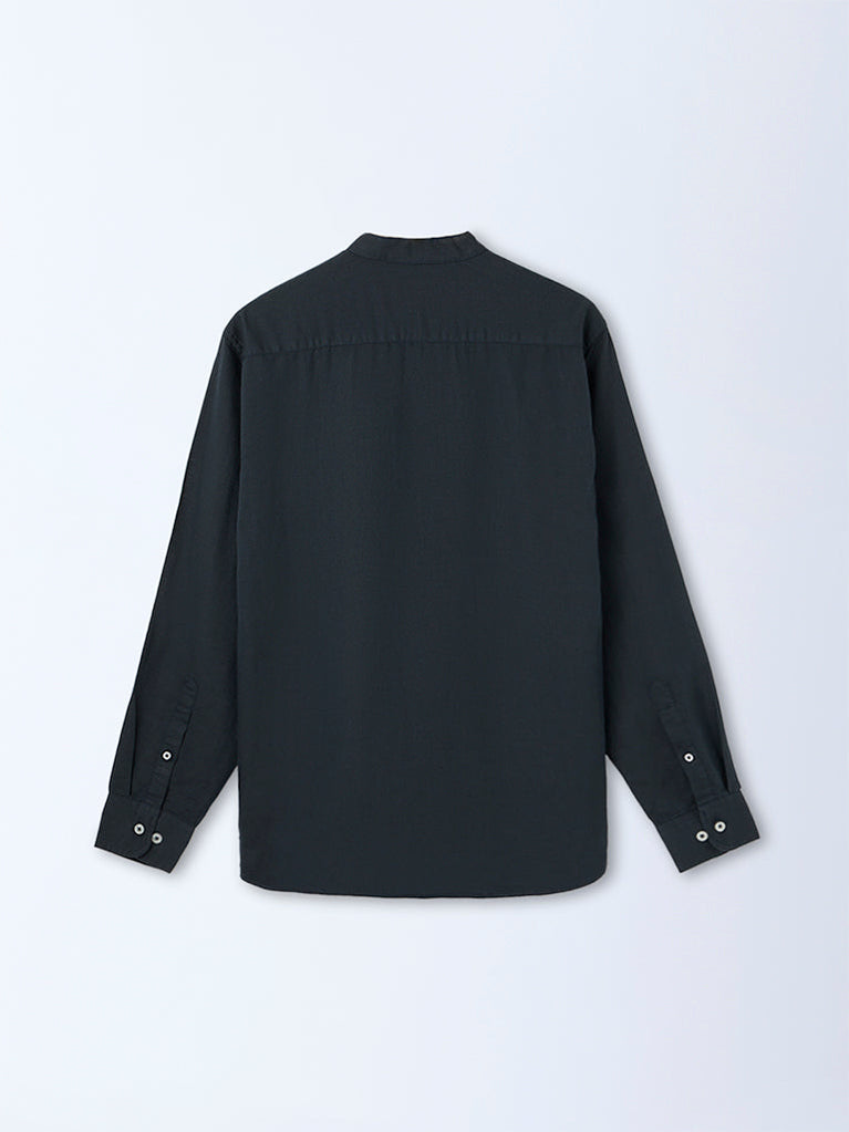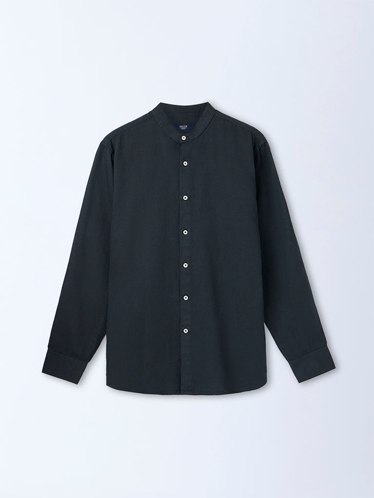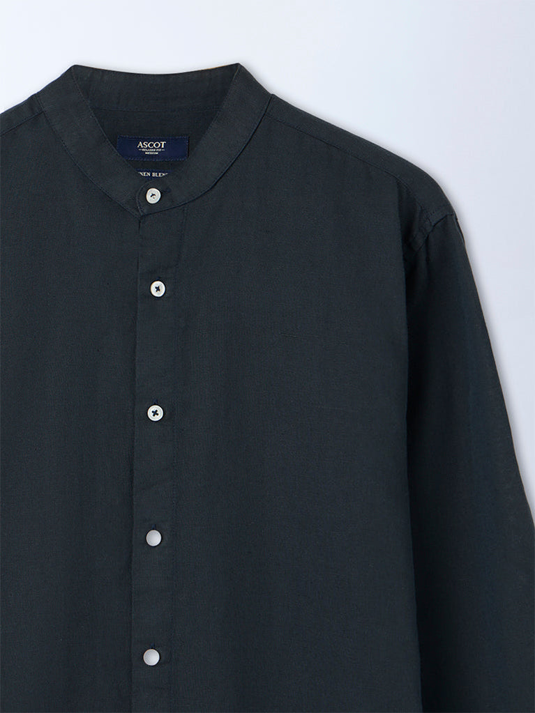 Refined and poised, this navy shirt from Ascot is crafted from soft, premium linen-blend fabric, offering effortless comfort for long wear hours. It is designed with a band neck, a buttoned placket and full sleeves for a timeless look. Framed in a relaxed-fit, it delivers an understated elegance, making it perfect for casual and everyday wear.