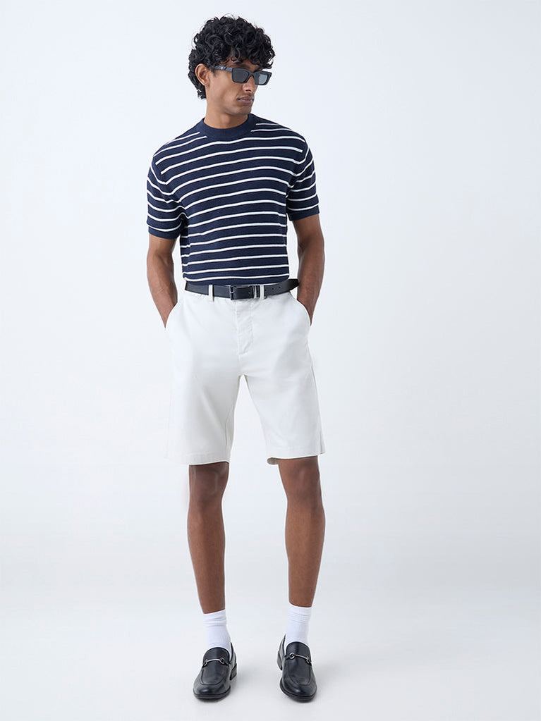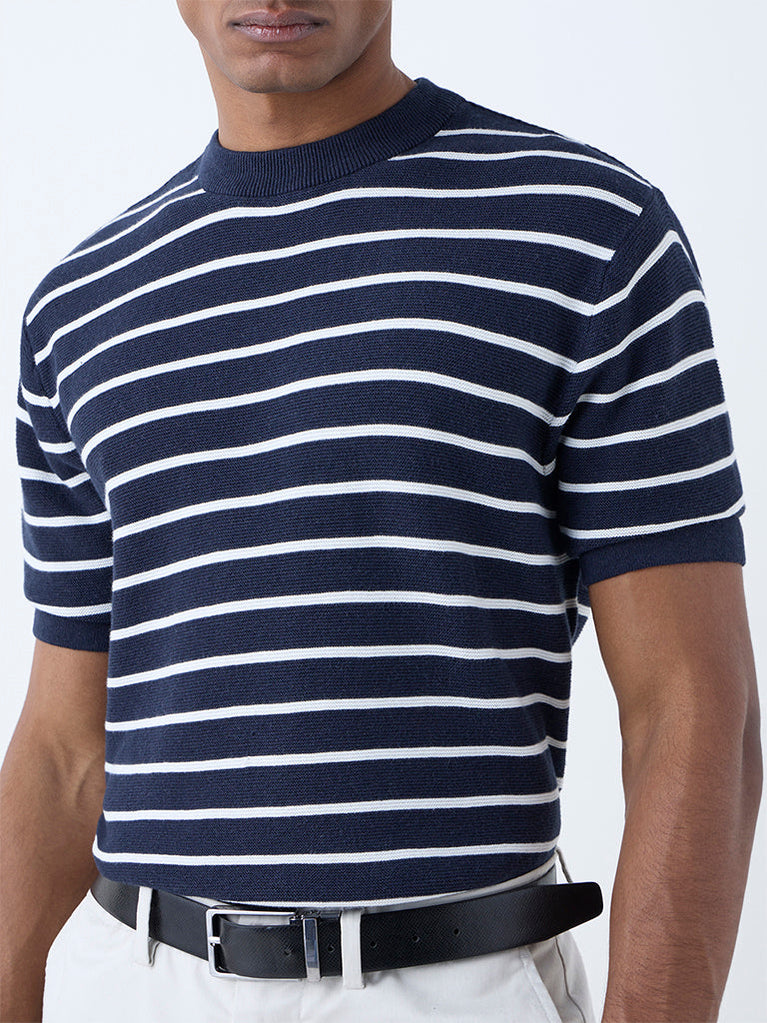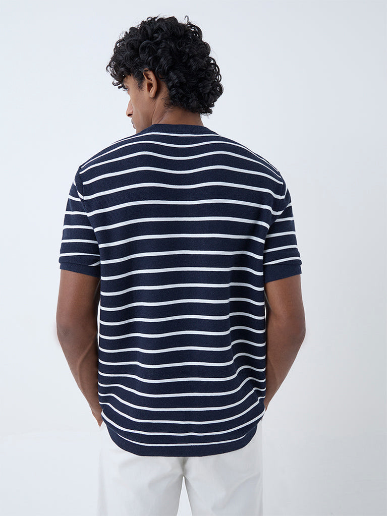 Ascot Navy Stripe Patterned Relaxed-Fit Cotton T-Shirt