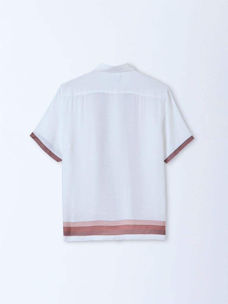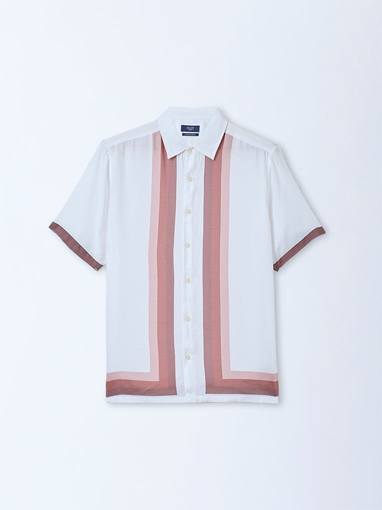 Ascot Off-White Stripe Pattern Relaxed-Fit Shirt