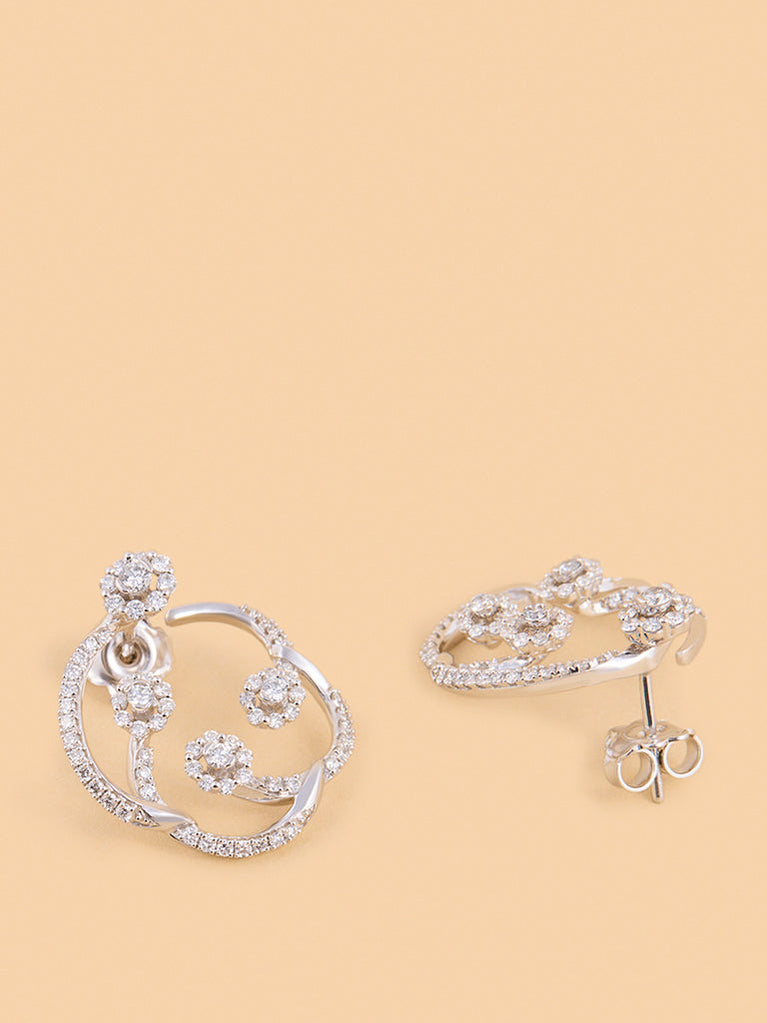 Celebrate yourself with these floral front to back earrings. Made in sterling silver and embellished with lab-grown diamonds, they provide a graceful touch to any ensemble.