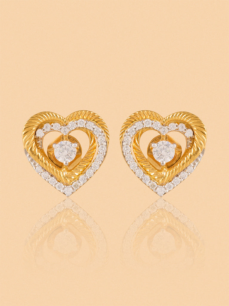 Embrace the essence of love with these Westside X Pome exquisite dual-layered heart studs, crafted from radiant gold vermeil. They feature a delicate pair of heart-shaped frames, intricately designed in gleaming gold and encrusted with lab diamonds. The encased, sparkling central solitaire allows light to dance through, enhancing the brilliance of this stunning piece of jewelry.