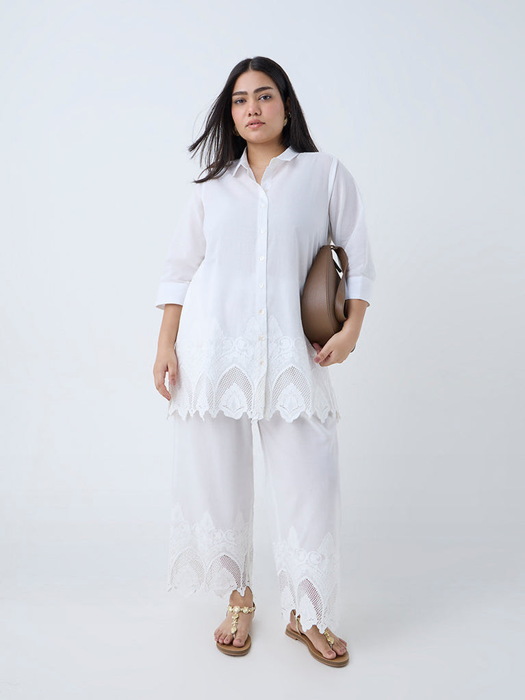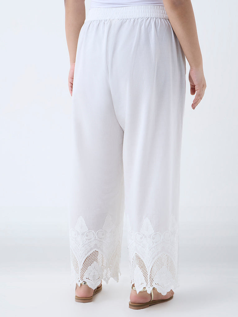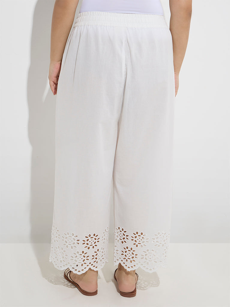 Diza White Schiffli Detailed Cotton Ethnic Pants
