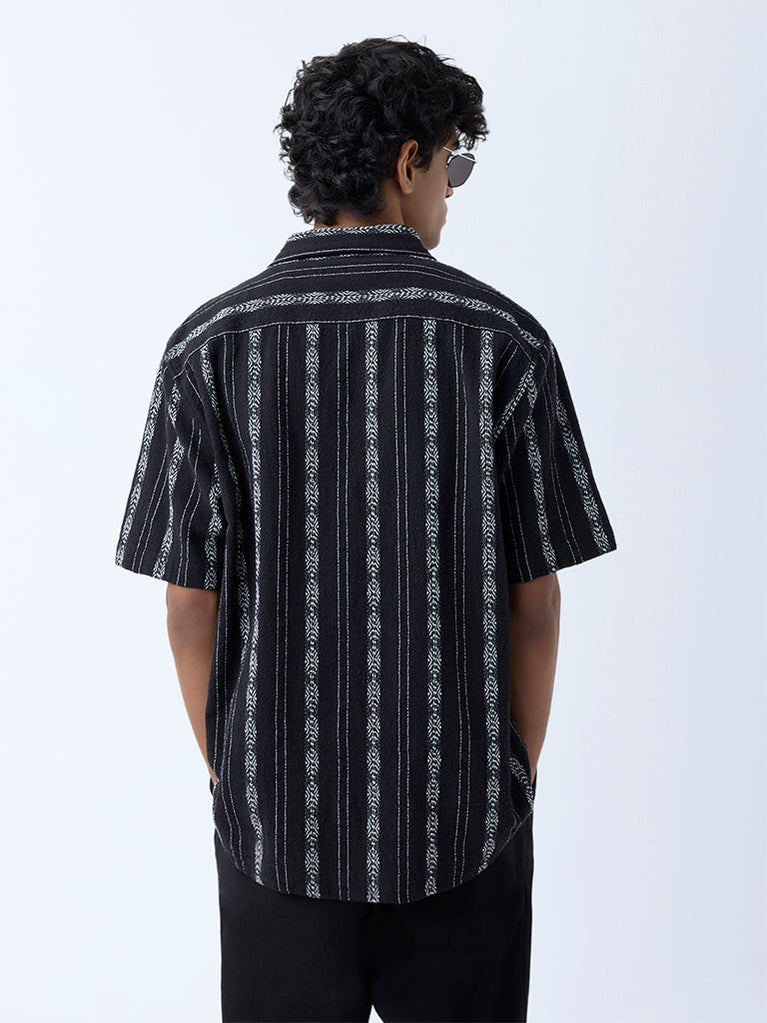 ETA Black Stripe Printed Relaxed-Fit Cotton Shirt