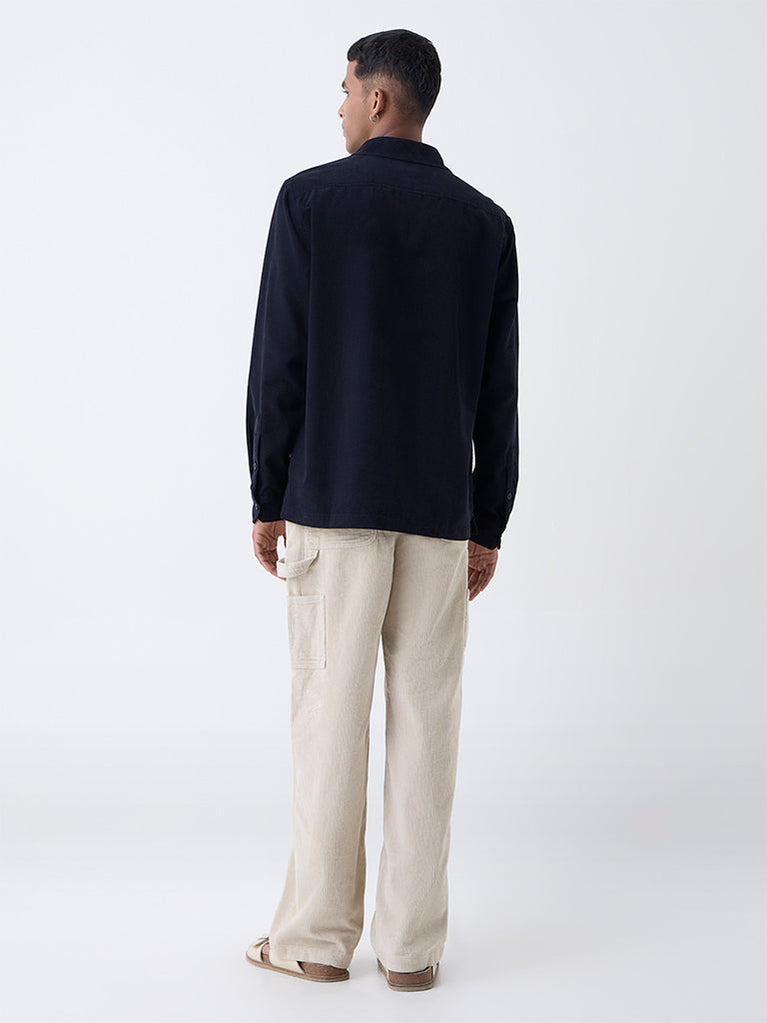 ETA Black Solid Relaxed-Fit Cotton Shirt