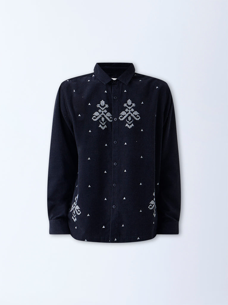 ETA Black Embroidered Relaxed-Fit Cotton Shirt