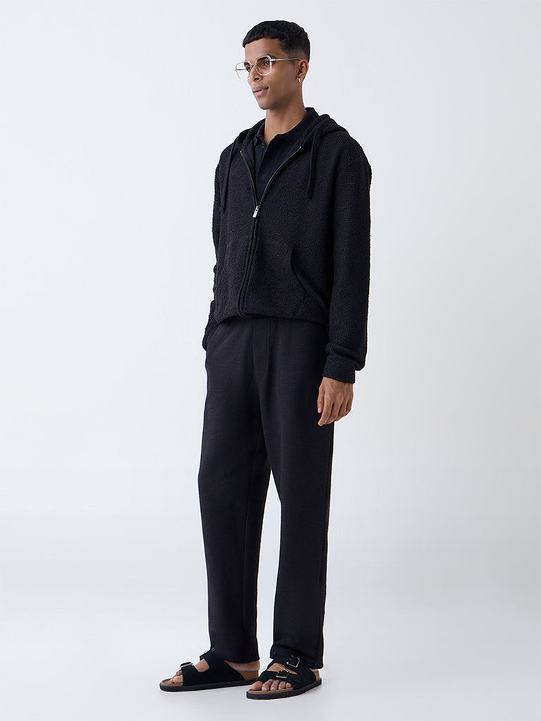 ETA Black Popcorn-Textured Relaxed-Fit Hoodie