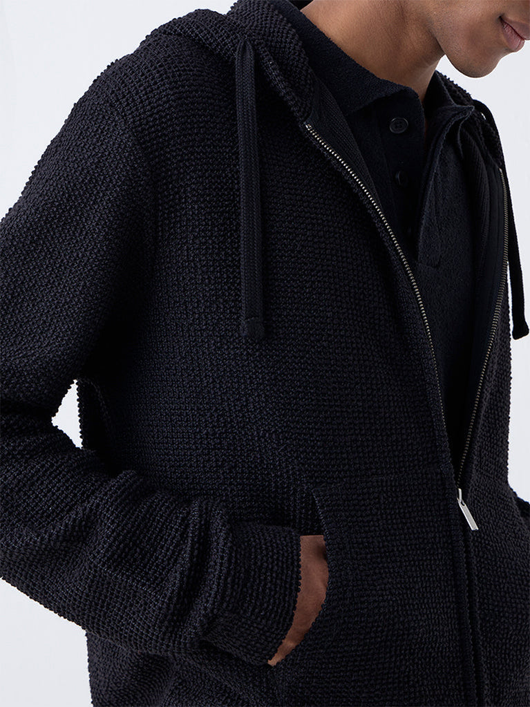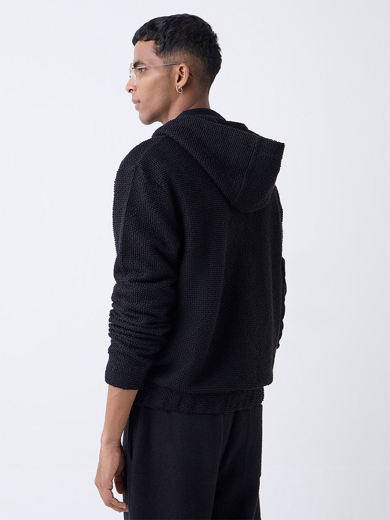 ETA Black Knit-Textured Relaxed-Fit Sweater