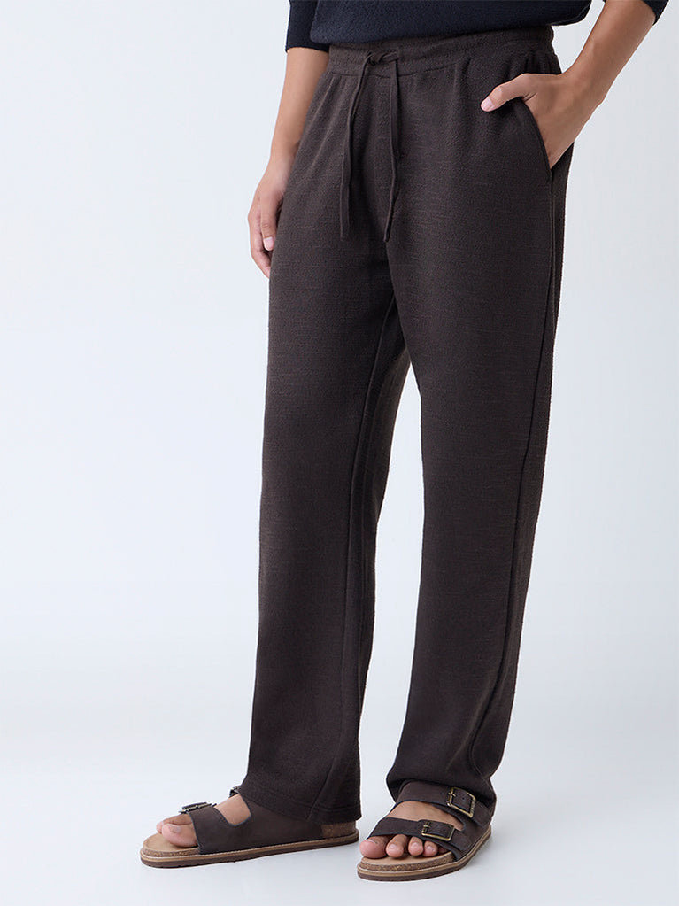 ETA Dark Taupe Solid Relaxed-Fit Mid-Rise Cotton Pants