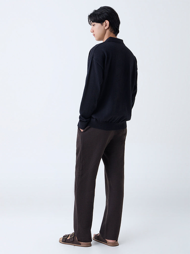 ETA Dark Brown Relaxed-Fit Cotton Sweater