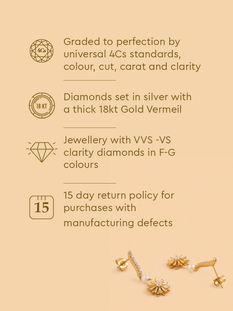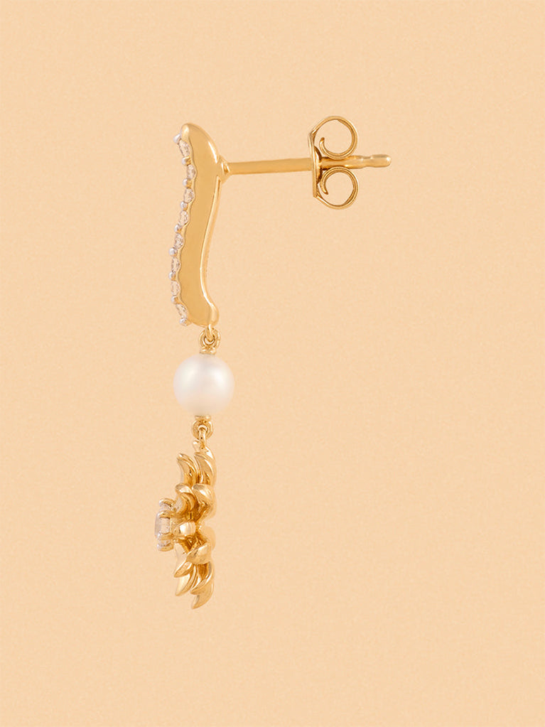These drop earrings from Westside X Pome are crafted with a gold-tone finish, each earring showcases a dainty daisy with a sparkling clear stone at its center, followed by a pearl drop. A slender, curved gold-tone accent adorned with small clear stones extends from the daisy, adding a refined touch. Secured with a post-back closure, these earrings offer both elegance and comfort, making them a perfect choice for elevating any outfit.