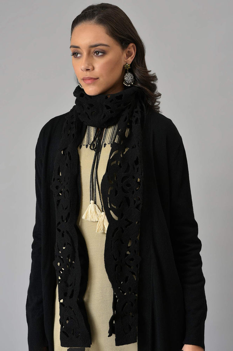 Black long dress in round neck and full sleeves. It also features embroidery on neckline and sleeves.