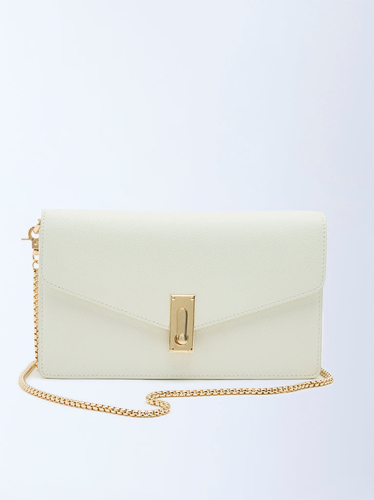 DescriptionDefined by modern elegance, this clutch creates a polished look.Accented with gold-tone detailing and a signature turn-lock closure, it features a chain strap for versatile styling.Crafted from genuine leather, the pocketed interior comfortably holds your phone, cards, and keys, making it an effortless go-anywhere carryall.