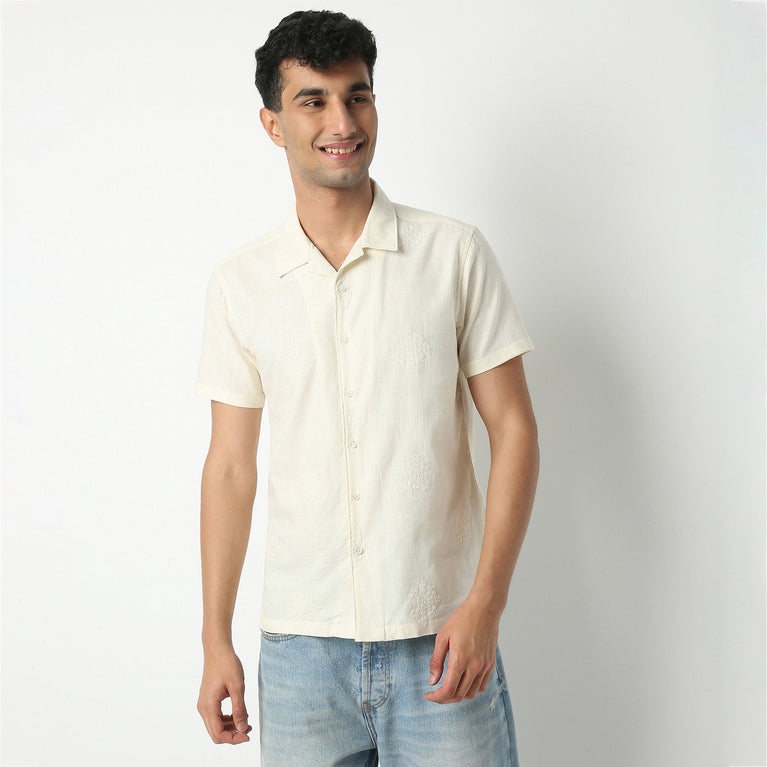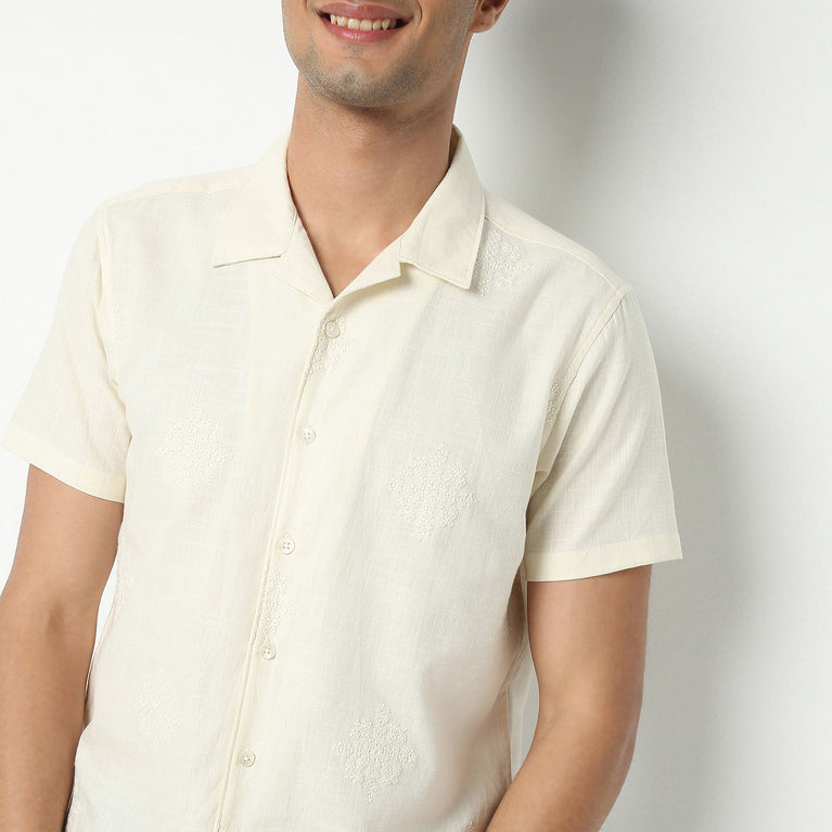 Camp Collar Half Sleeve Relaxed Fit Cuban Embroidered Shirt