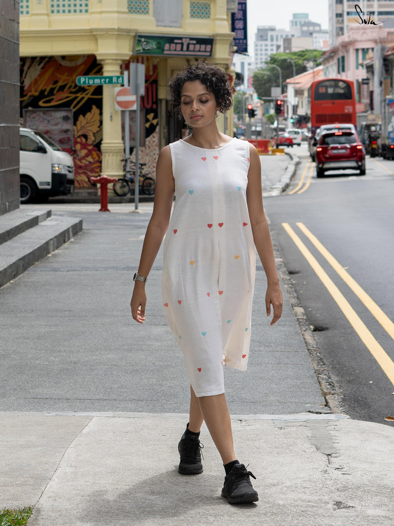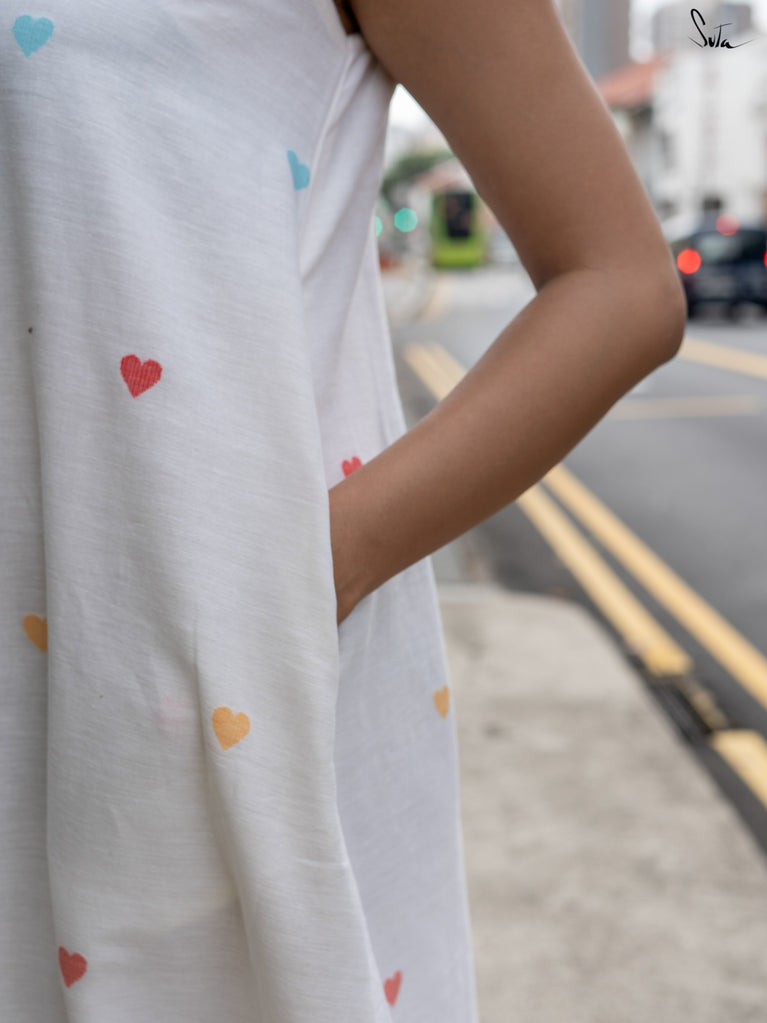 Description: This white shirt is made of soft and smooth cotton satin fabric. It features a red heart embroidered on the left side of the chest, adding a pop of color and a touch of charm to the shirt. The heart design is delicate and intricate, making it a perfect addition to any outfit. This shirt is versatile and can be dressed up or down, making it a great choice for any occasion.