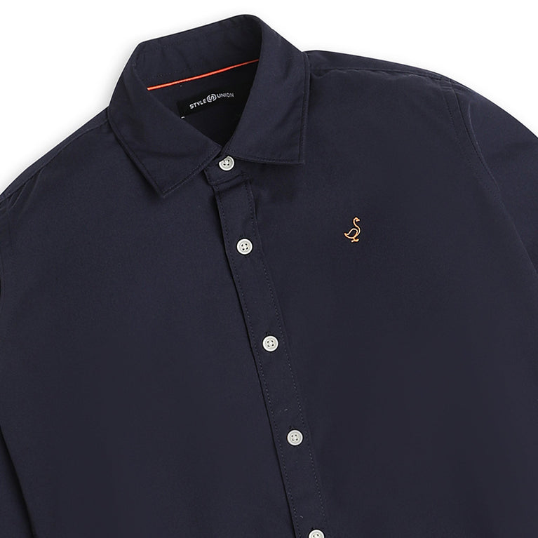 These solid pattern shirt has shirt collar and full sleeve. Made from polyester cotton, your kid's feel comfortable wearing the product.