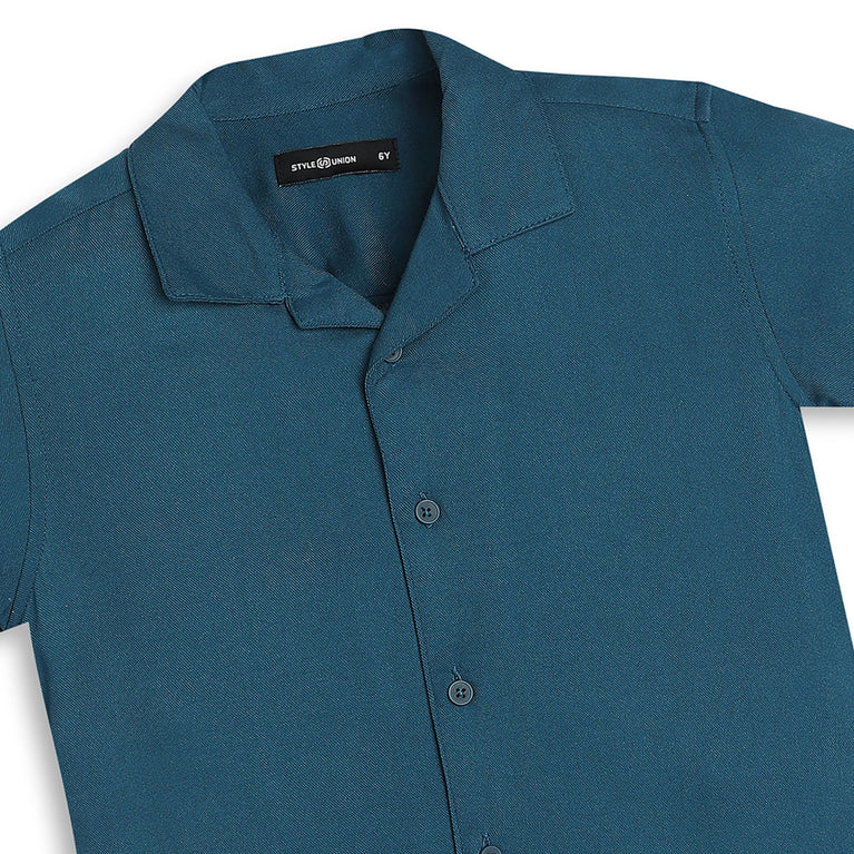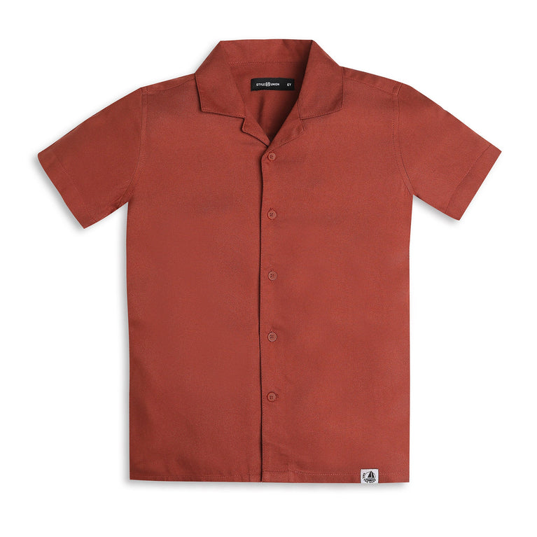 These solid pattern shirt has camp collar and half sleeve. Made from viscose, your kid's feel comfortable wearing the product.