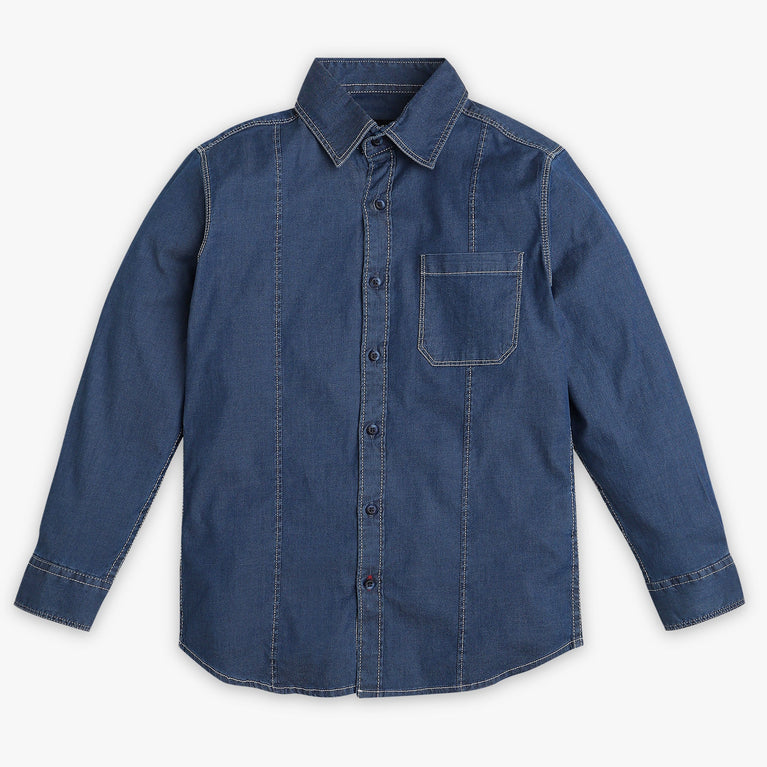 These solid pattern shirt has shirt collar and full sleeve. Made from cotton, your kid's feel comfortable wearing the product.