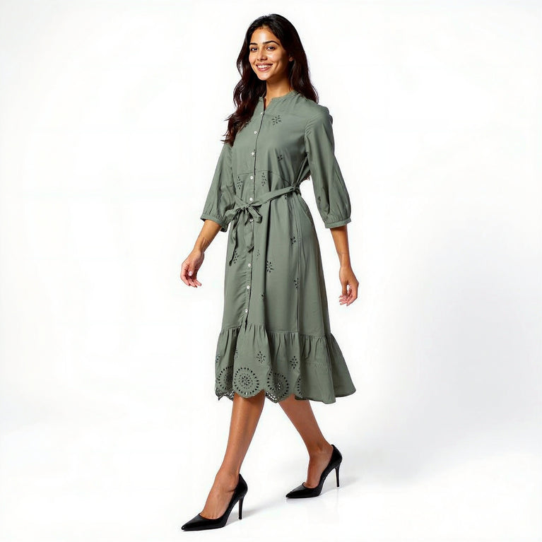 Experience the perfect blend of elegance and comfort with our Button Down Tiered Schiffli Dress. Crafted from 100% viscose, this dress offers a soft, breathable feel that drapes beautifully, making it ideal for both casual outings and special occasions. The intricate Schiffli pattern adds a touch of sophistication, while the flared fit ensures a flattering silhouette that moves with you.