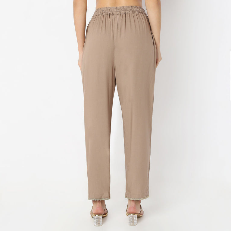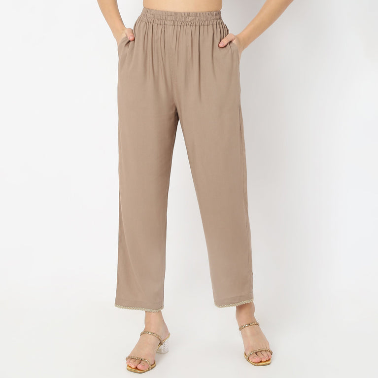 Step into effortless style and comfort with these Regular Fit Printed Ankle Length Mid Rise Palazzos. Crafted from 100% viscose, these palazzos offer a soft, breathable feel that keeps you comfortable all day long. The vibrant printed pattern adds a touch of flair, making them perfect for both casual outings and more formal occasions.