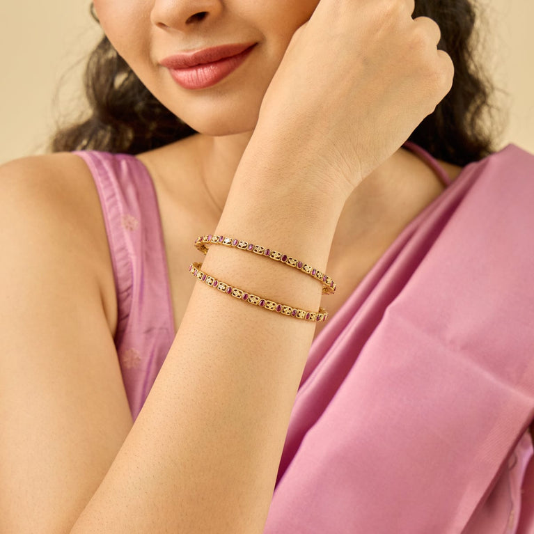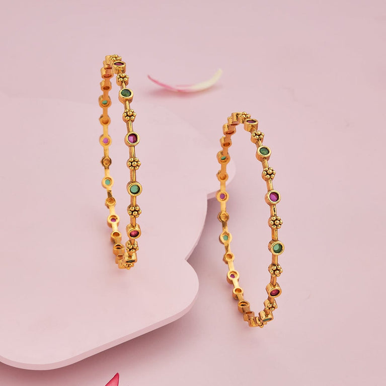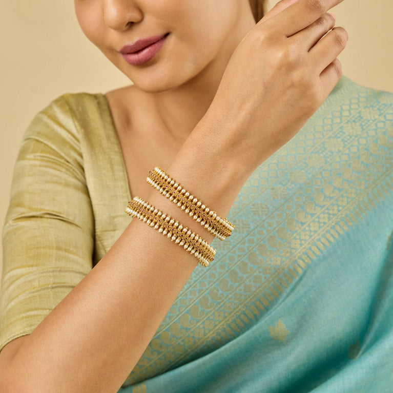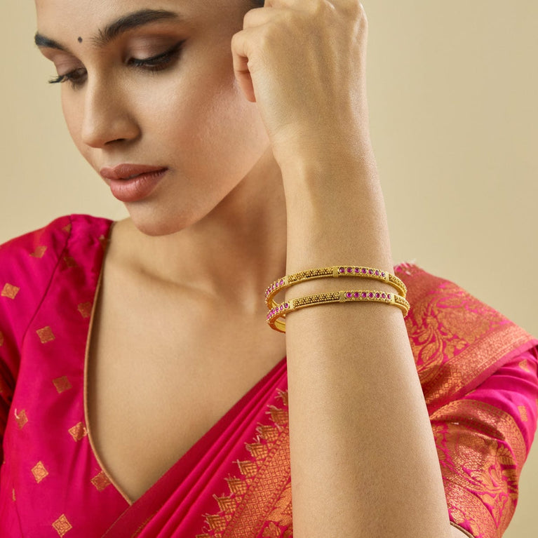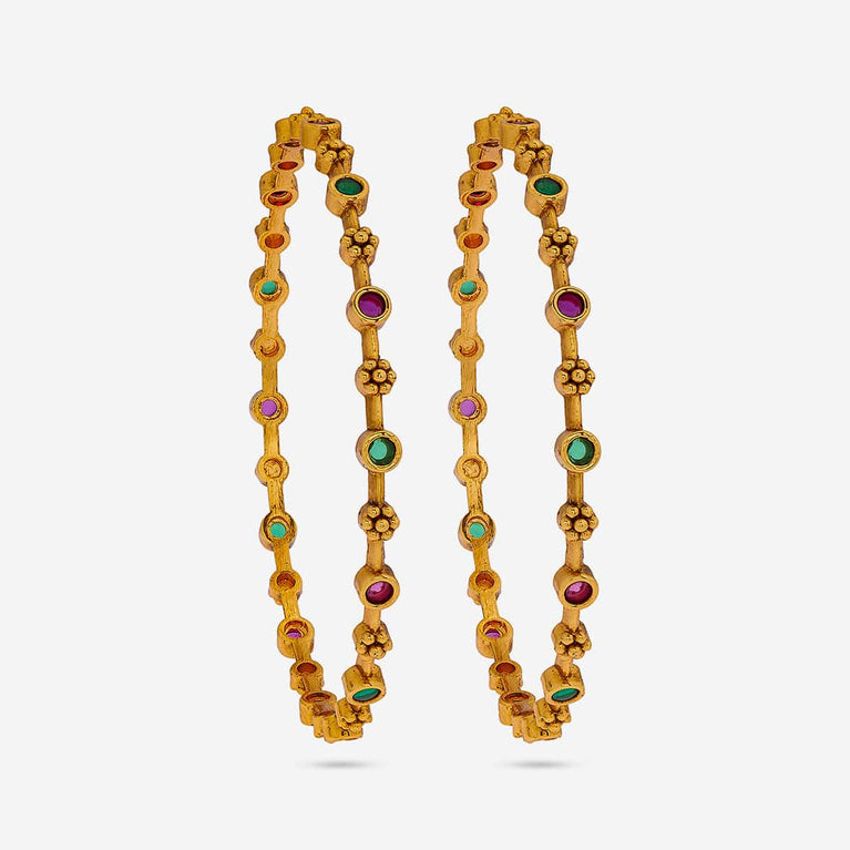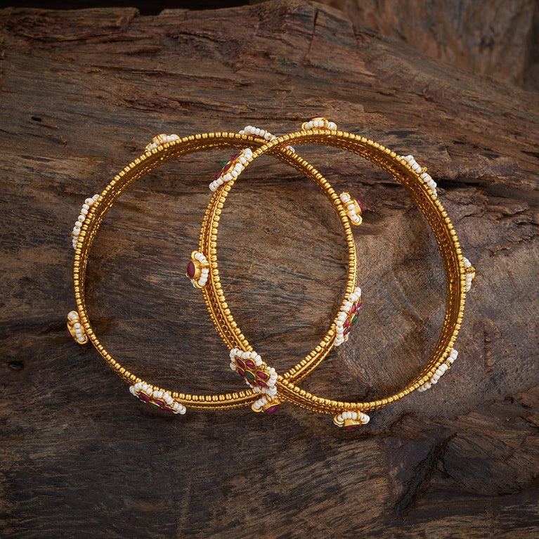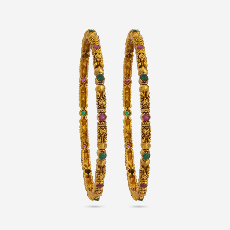 Traditional Design Antique BangleEmbrace the main character's energy with these antique bangles. Set in a rich gold tone polish, these bangles are the epitome of simplicity and festiveness in harmony. Pair with an anarkali for a Bollywood movie kind of look, or pair with evergreen sarees for a traditional look.