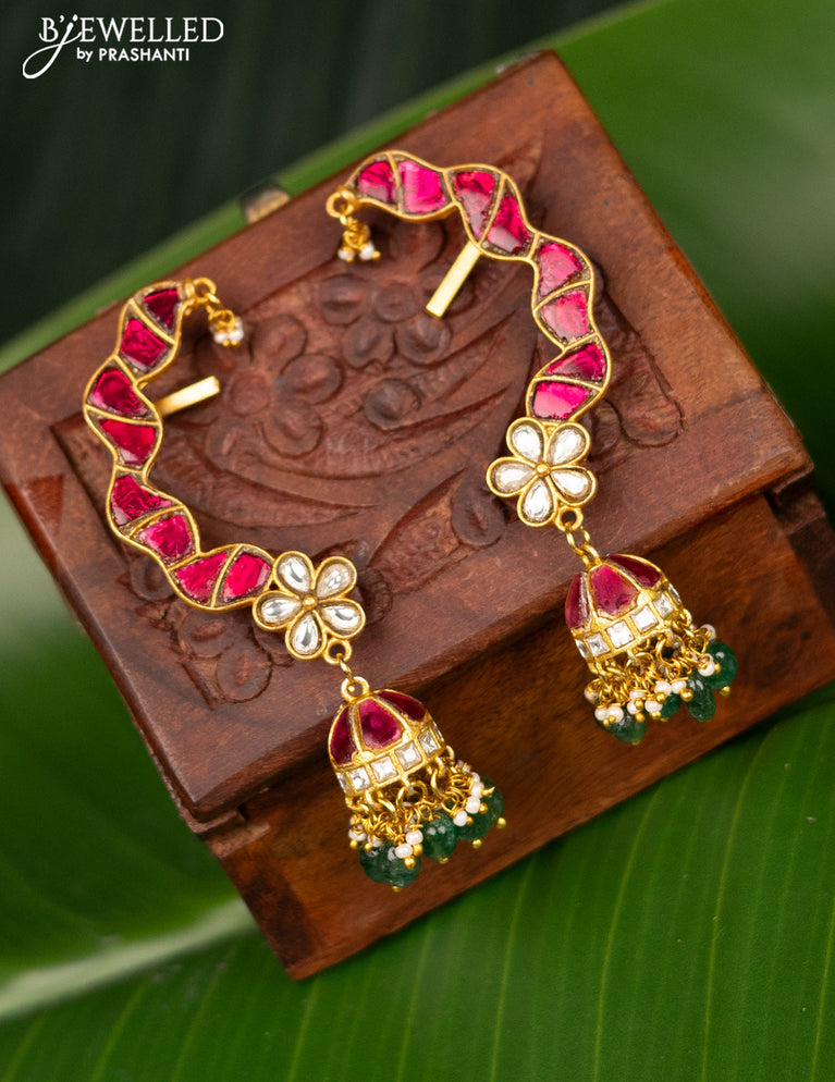 Antique earcuff jhumka with pink jadau kundan stones and pearl & beads hanging
