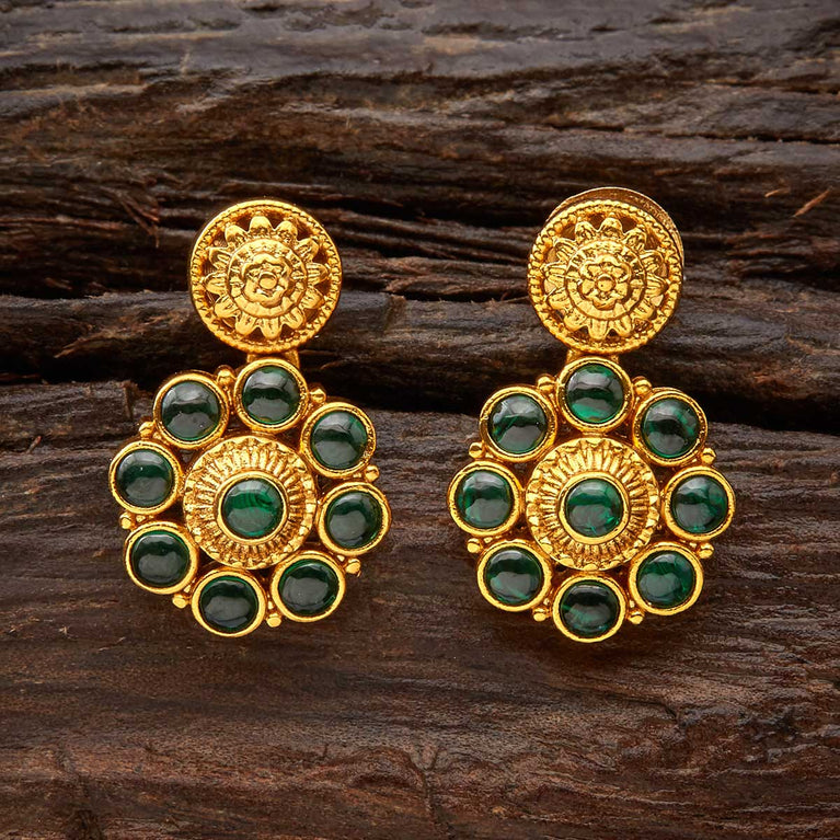Kushal's Fashion Jewellery Flower Motif Antique EarringTry our vintage earrings with green synthetic stones and beads, and gold polish if you're seeking lightweight statement items. Both a push-back closure and stud styling are available. Its attractive style, which is comfortable on the ears and looks fantastic with your traditional outfits, only furthers its allure. So, don't wait and grab your pair now.