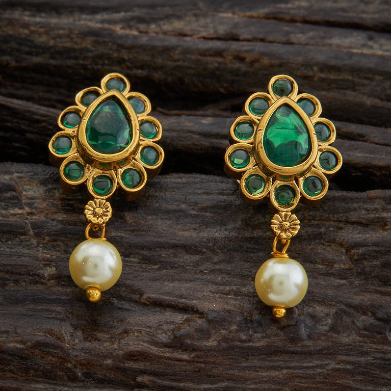 Kushal's Fashion Jewellery Flower Motif Antique EarringGet these vintage earrings in the form of flowers to command attention. These earrings are just the showstopper, giving you a basic style with green synthetic stones and a white pearl. Get your pair immediately if you're seeking an affordable standout item. This vintage earring looks great on your earrings because it is available in stud style.