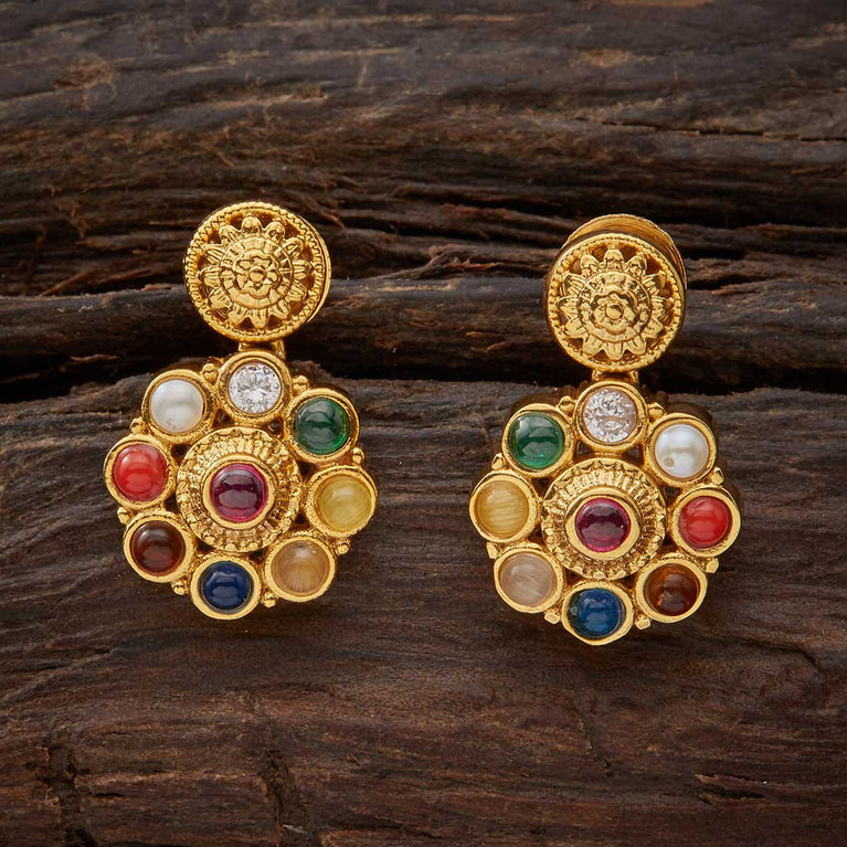 Kushal's Fashion Jewellery Navaratna Antique EarringEnjoy the elegance of Kushal's Ruby and green Antique Earrings. These earrings, which combine sanguine and pastel colors, are a tribute to ageless elegance and are the talk of the town. They are ideal for any occasion and are great presents for your loved ones. These delicate accessories will enhance your ethnic clothing.