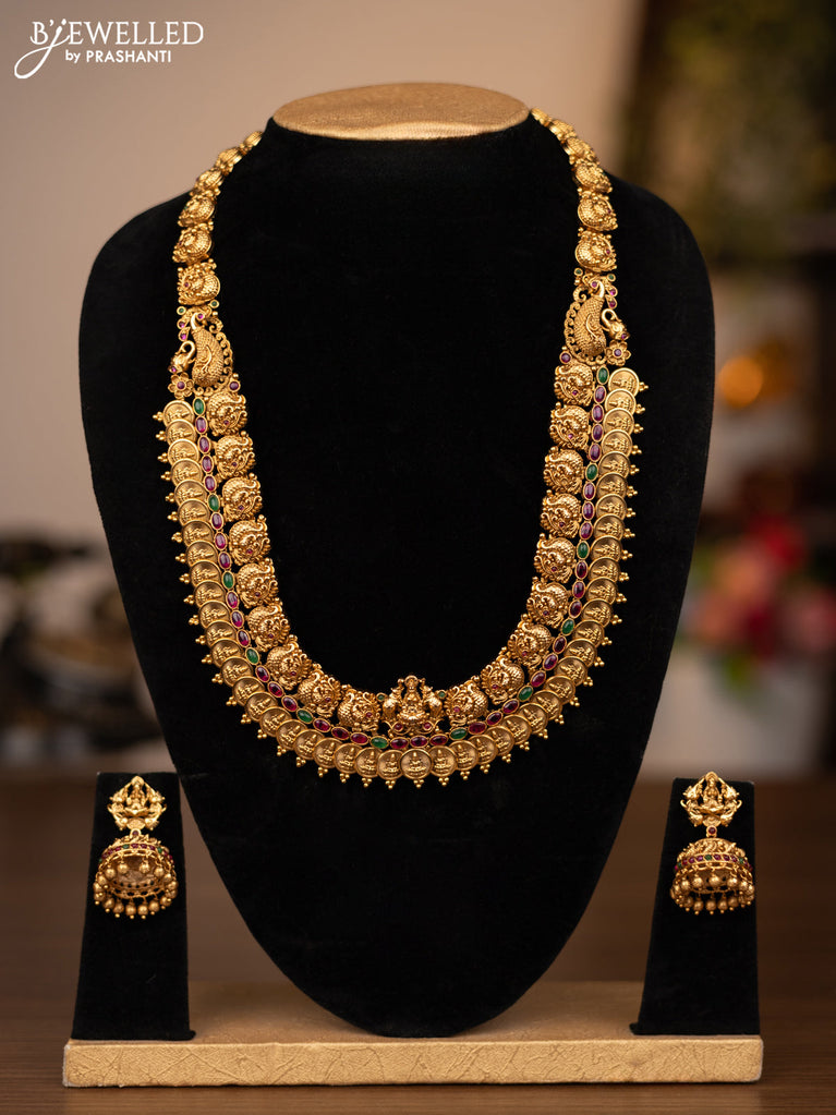 Antique haaram lakshmi design with kemp stones and pearl & golden beads hanging