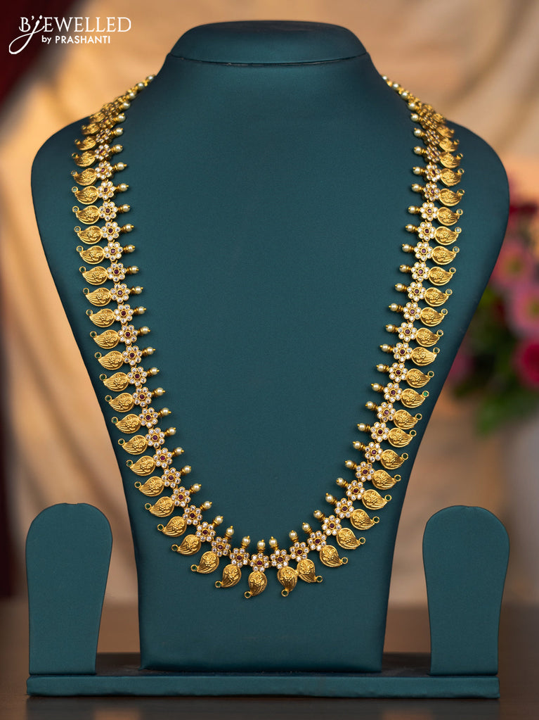 Antique haaram pecock design with kemp and cz stones and pearl hangings