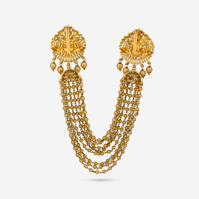 Antique hair clip big size krishna design with kemp stones and golden beads hanging