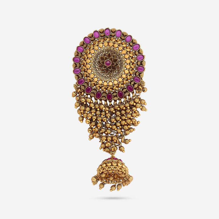 Antique hair clip medium size lakshmi & chandbali design with kemp & cz stones and pearl hangings
